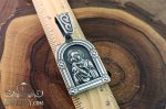 Изделие отличается высокоточной детализацией: плавные линии, чёткий рельеф, проработанные элементы и строгость форм. Чернение придаёт образу глубину и выразительность, а декоративная рамка завершает композицию, делая иконку не только духовной, но и эстетически завершённой. Такая работа станет достойной частью повседневного образа, подчёркивая внутренний стержень мужчины и его связь с верой.